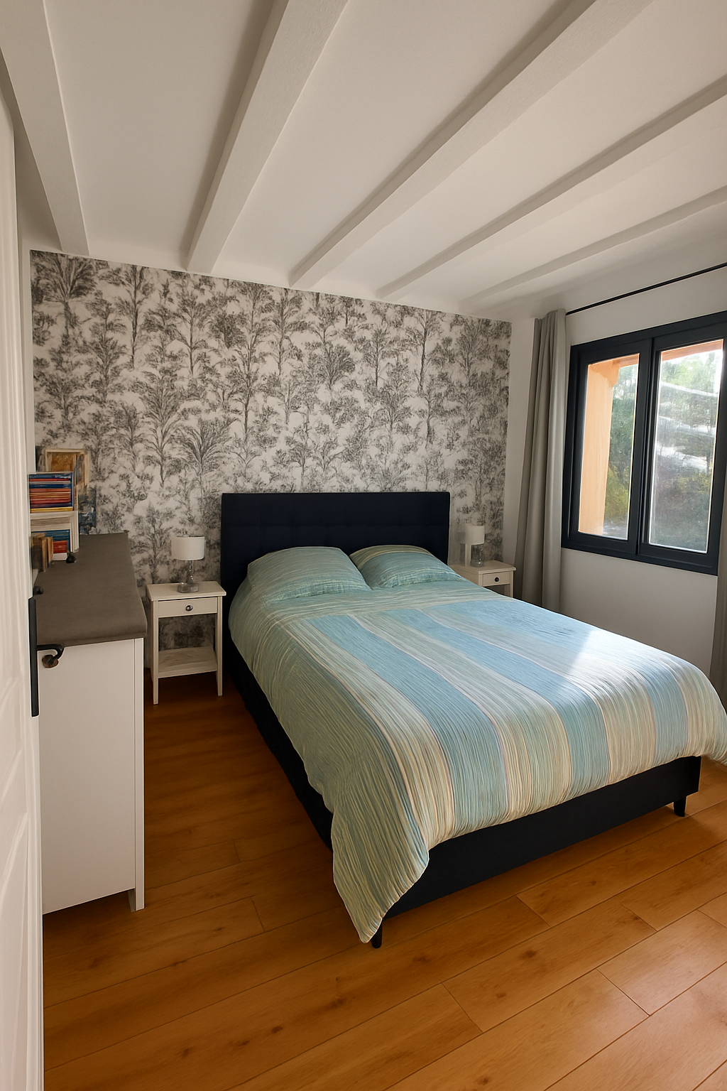 Composée d’une pièce à vivre spacieuse ouverte sur une grande terrasse dallée couverte orientée plein Sud, de deux chambres, d’une salle d’eau, d’une buanderie, d’un immense sous-sol et d’un grenier aux multiples possibilités d’aménagements, cette propriété offre un joli jardin clôturé de 980 m2.