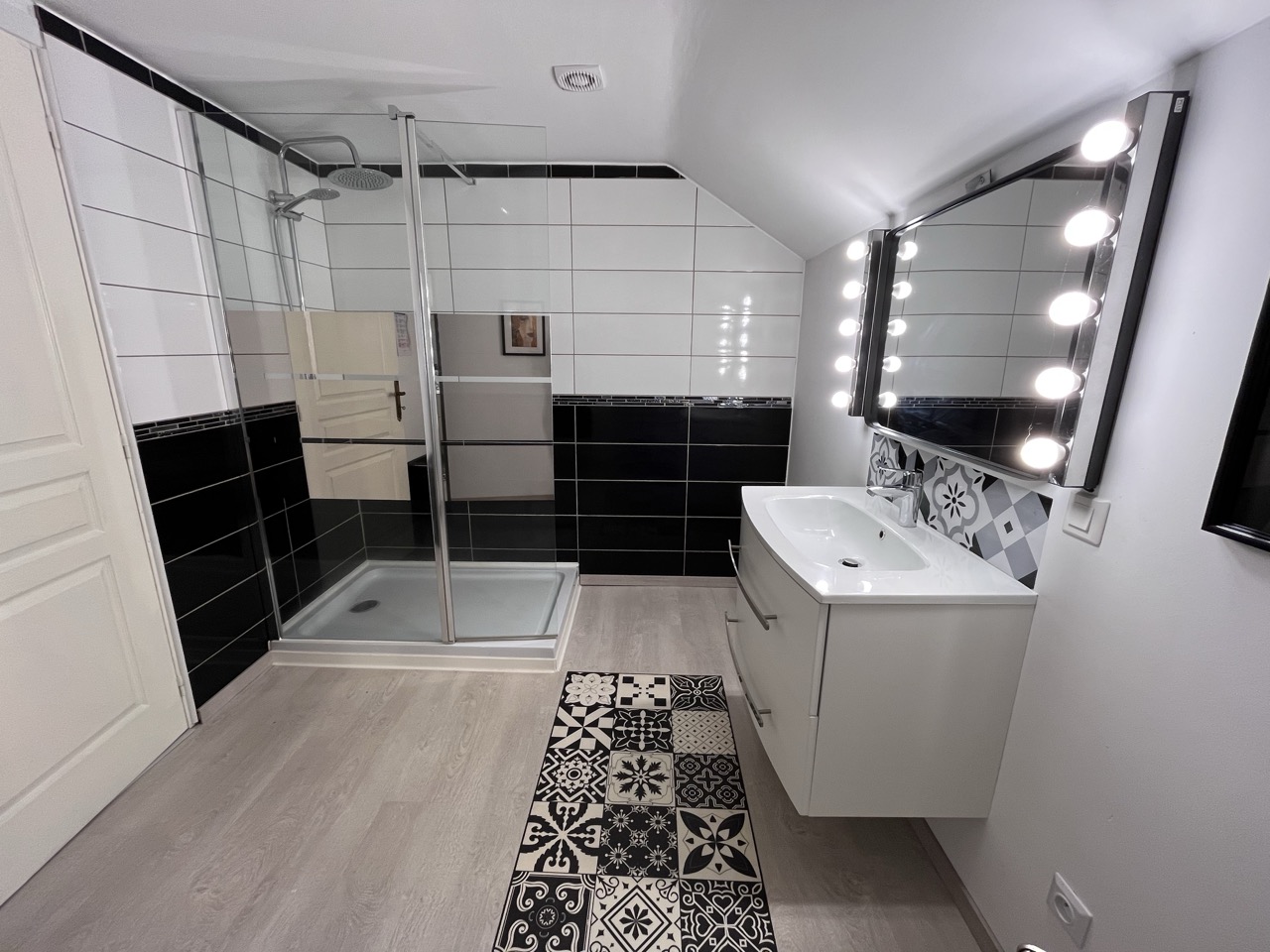 La maison dispose de radiateurs électriques et d’un poêle à bois.