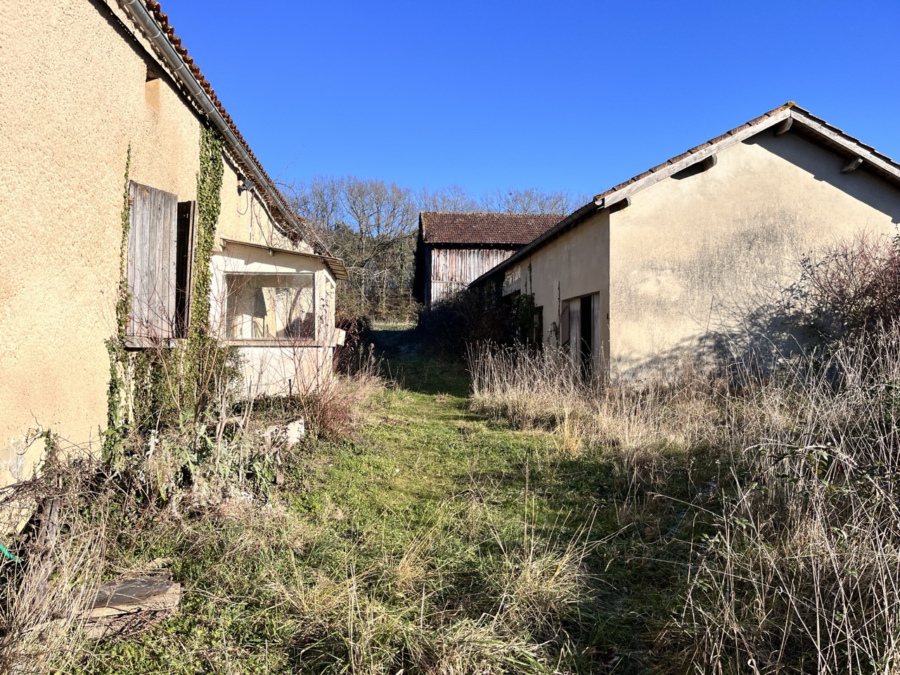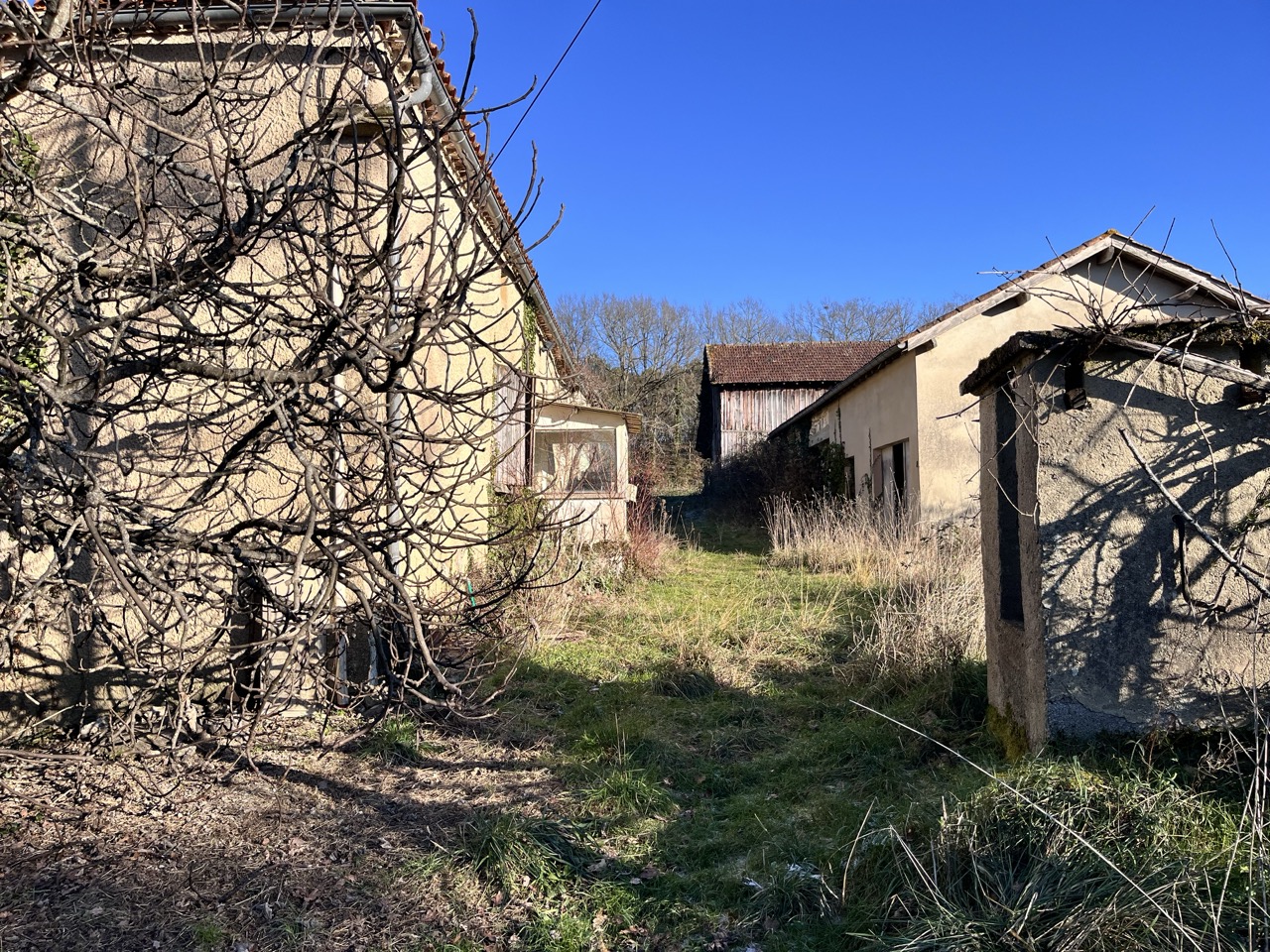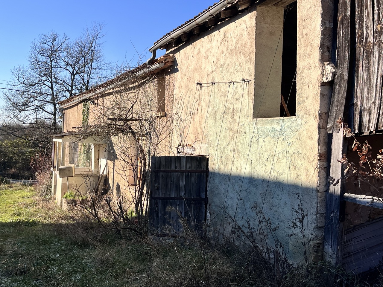 Corps de ferme composé d’une maison principale à restaurer, d’une grange attenante permettant une extension, d’un séchoir à tabac et de diverses dépendances.