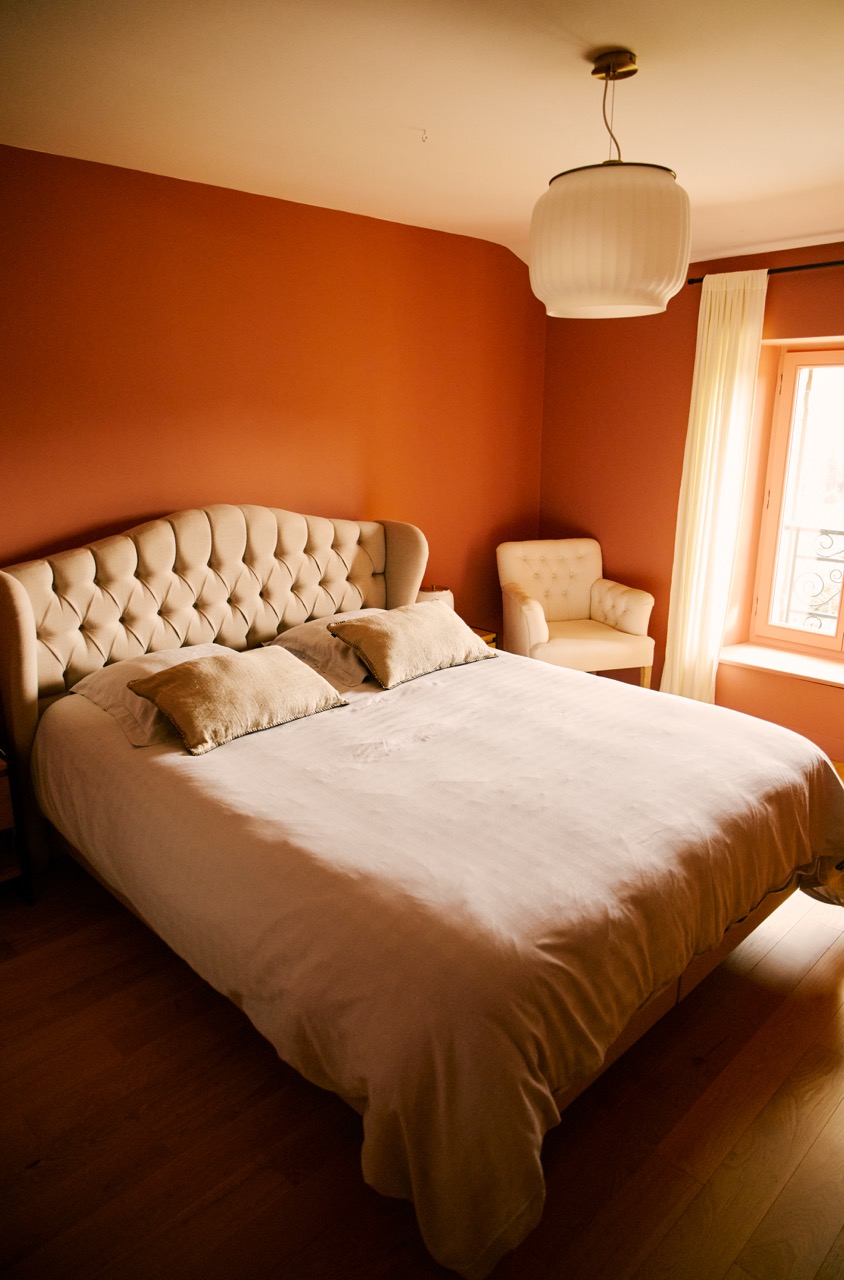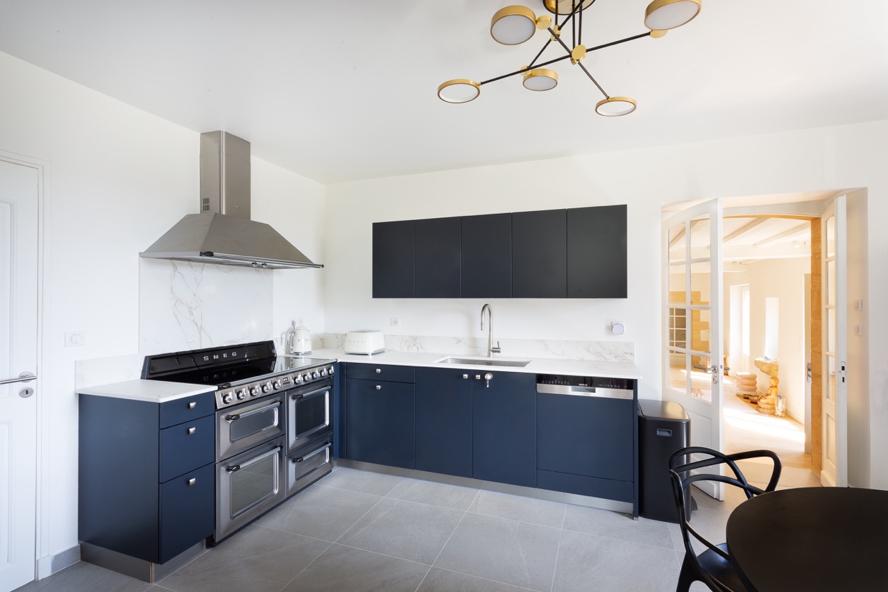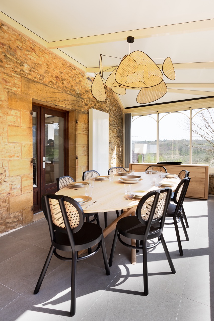 Les propriétaires ont su allier élégamment la noblesse des matériaux traditionnels (tels que des plâtres immaculés, des parquets en chêne massif,…) & le design contemporain au charme de la pierre dorée.