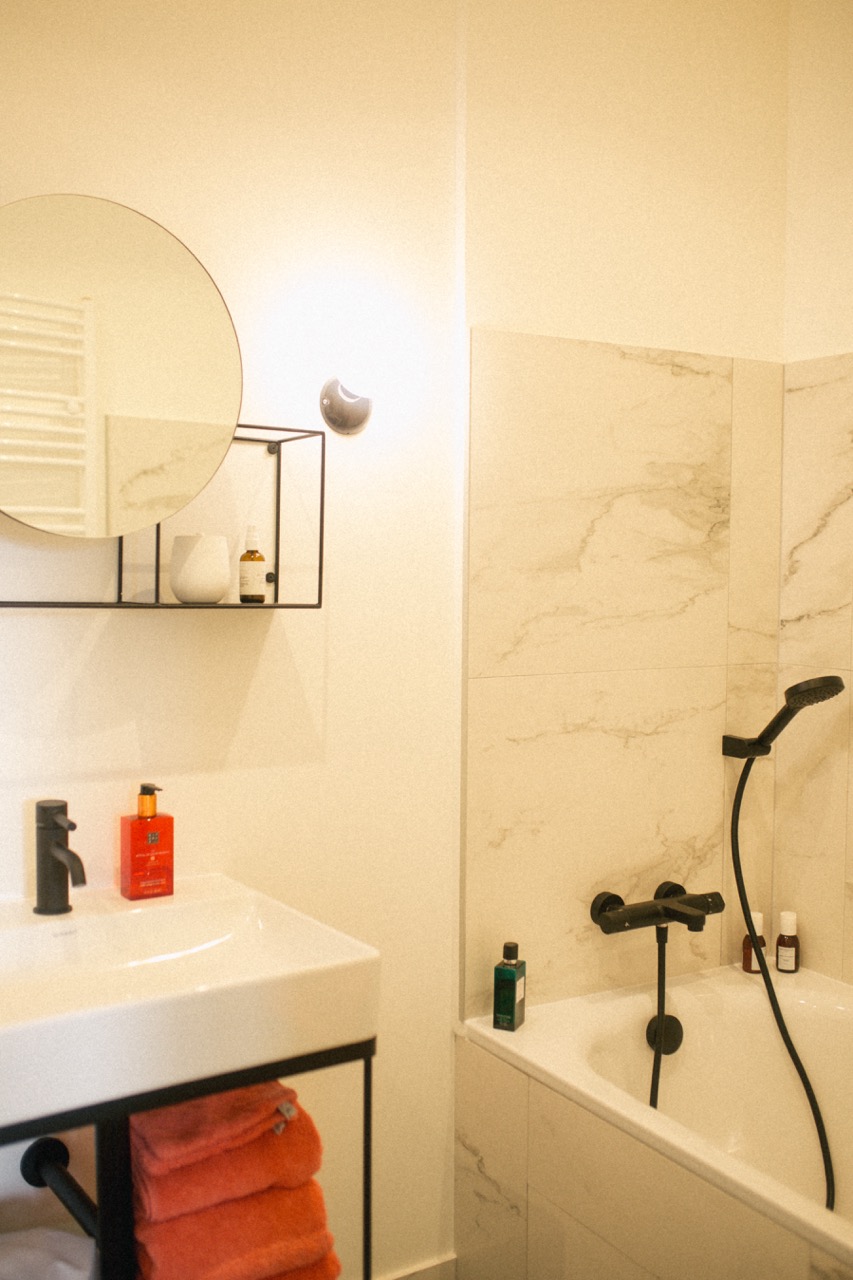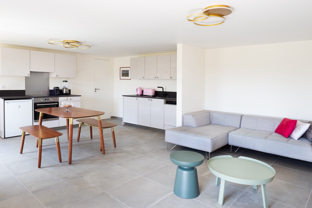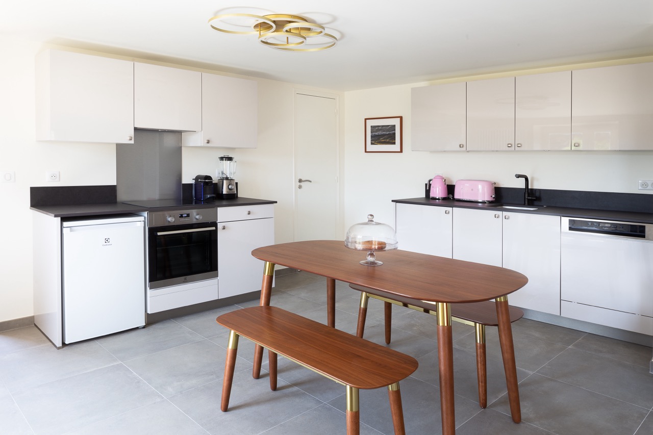Les propriétaires ont su allier élégamment la noblesse des matériaux traditionnels (tels que des plâtres immaculés, des parquets en chêne massif,…) & le design contemporain au charme de la pierre dorée.