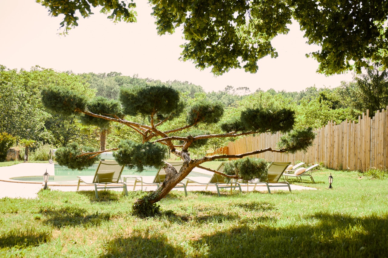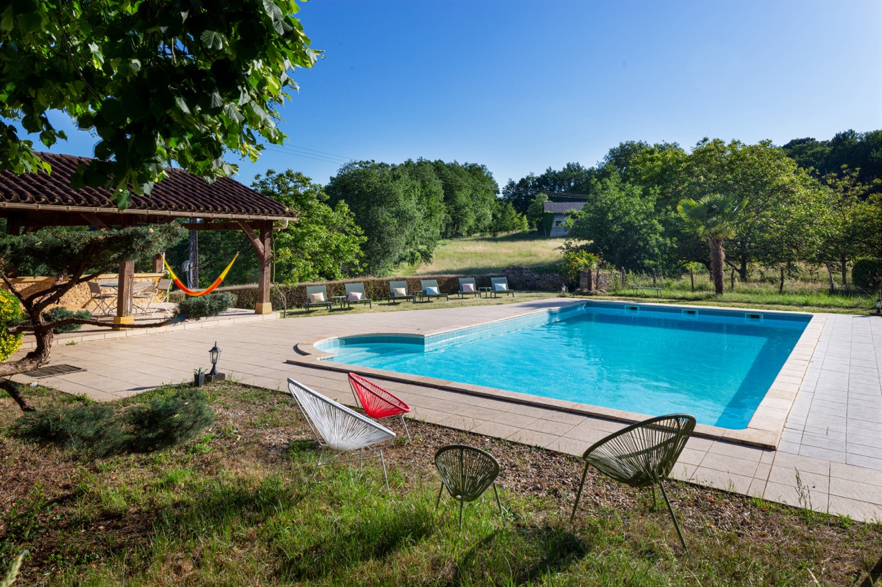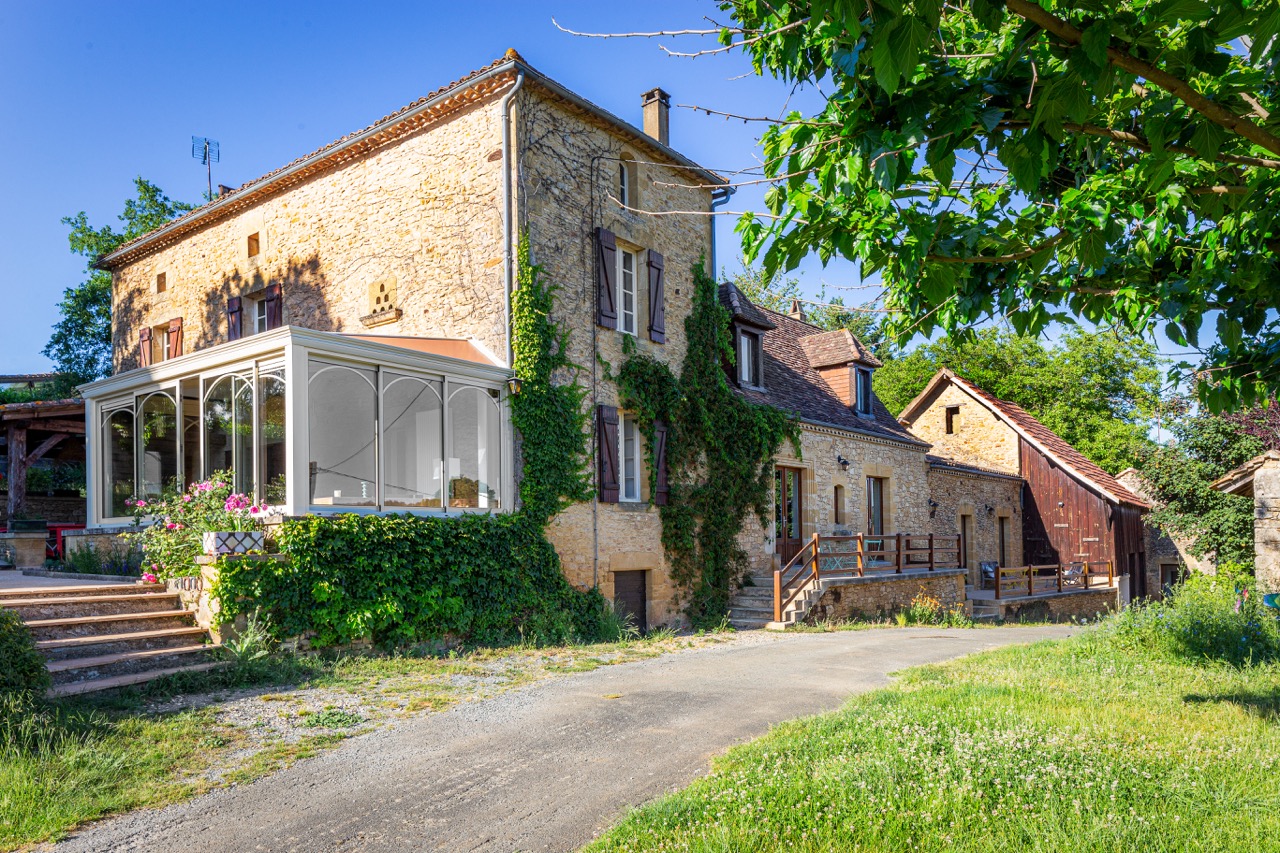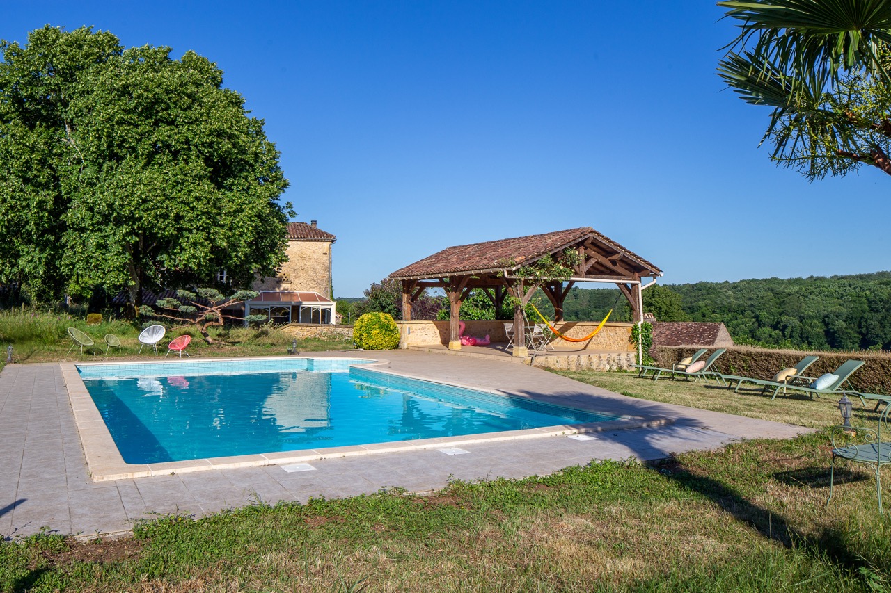 SOMPTUEUSE PROPRIÉTÉ située en position dominante, surplombant les vallons boisés du Périgord Pourpre, enveloppée de plus de 11 hectares de bois (6Ha) et prairies (5Ha), dans un environnement paisible et ressourçant.