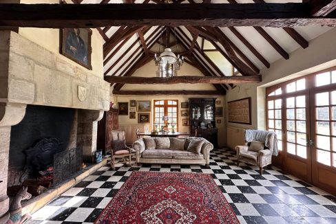 Ancien relais de chasse ayant conservé toute son authenticité : majestueuses cheminées, poutres apparentes, … une cave voutée enterrée accentue le mystère médiéval du lieu. Un double garage, un court de tennis, un étang alimenté par une source intarissable, une piscine chauffée, …